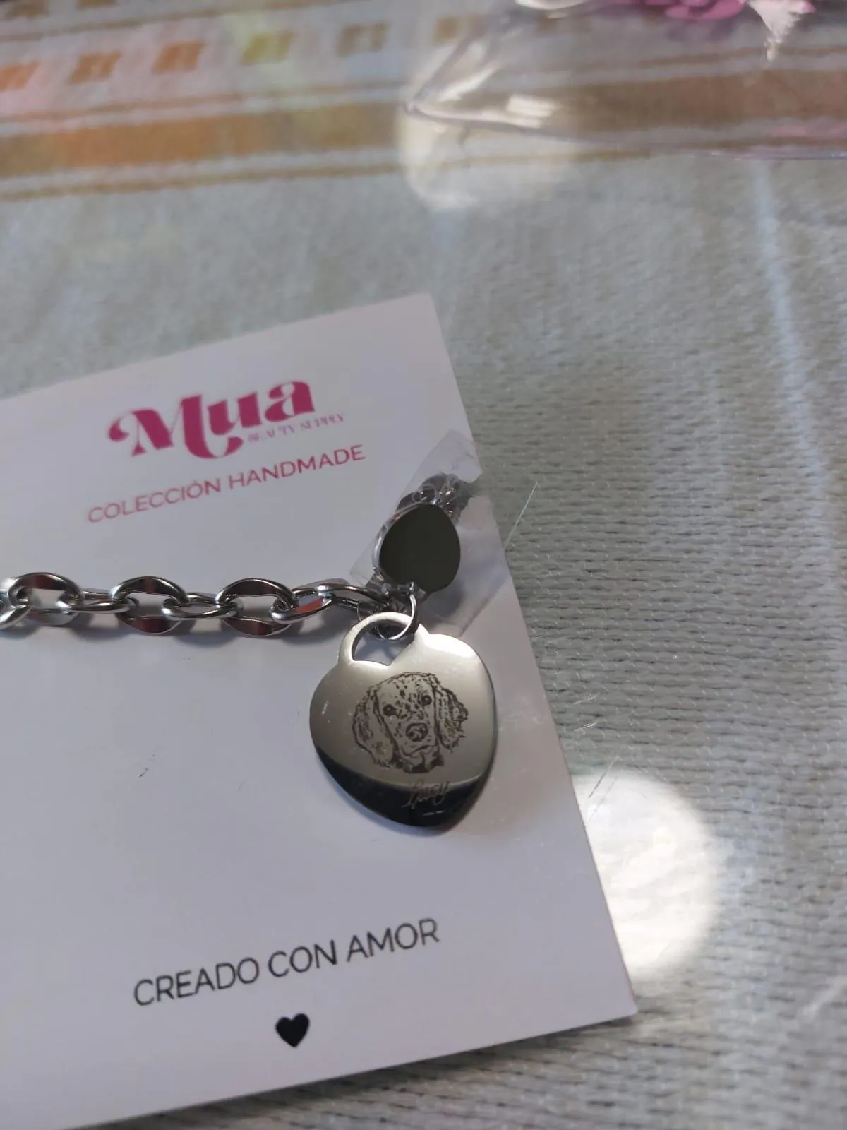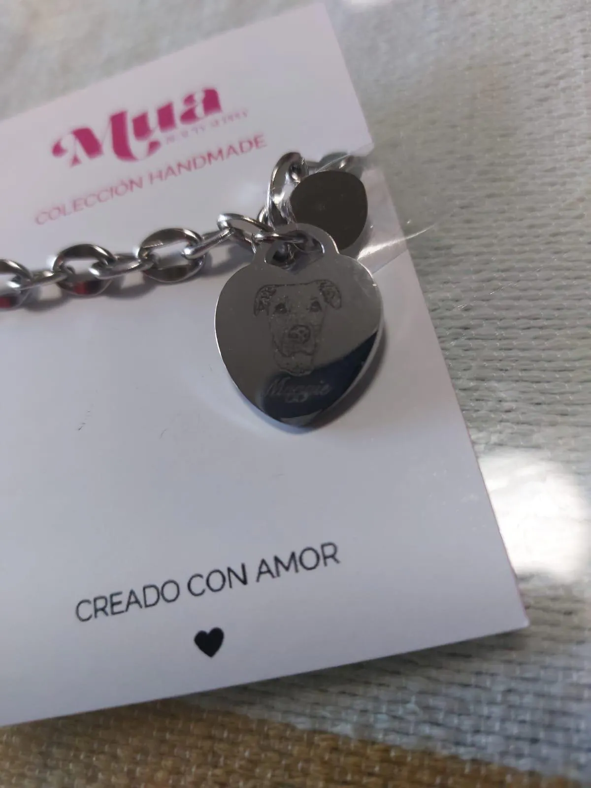 La pedí para mi mamá porque hace casi un año que nuestra bebé 🐶 ya no está, le encantó, es una forma muy bonita de llevar un recuerdo de ellos. La pulsera es muy bonita y el grabado se ve muy bien hecho.