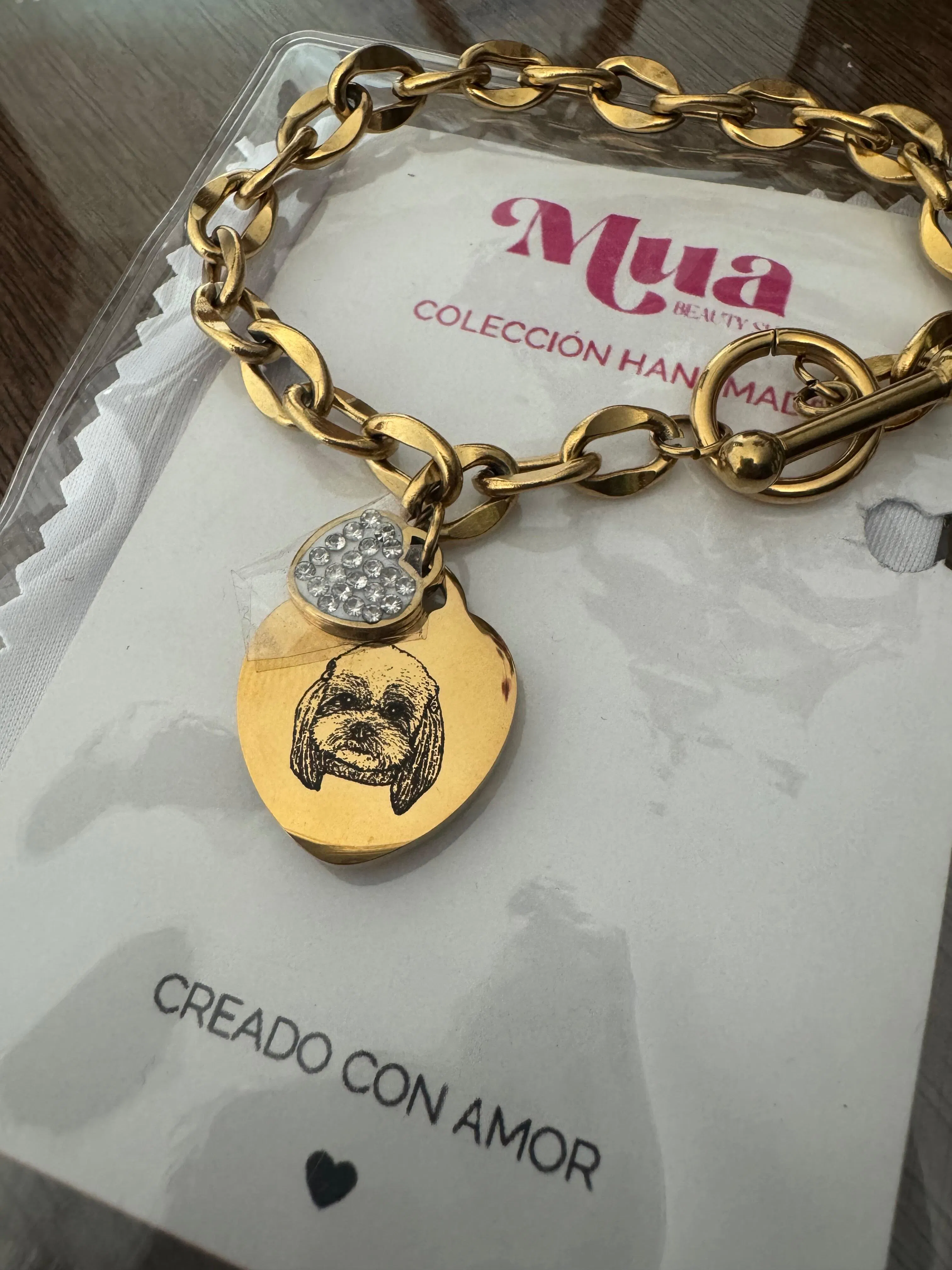 ¡Porque lo pediste! La Pulsera Herz, adornada con un pequeño charm de corazón muy sparkly llega con la imagen ilustrada a mano de tu mascota. Edición Limitada